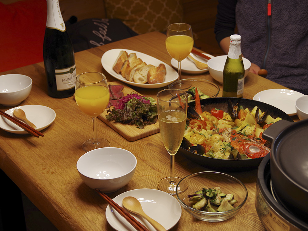 大きなダイニングテーブルでお食事。